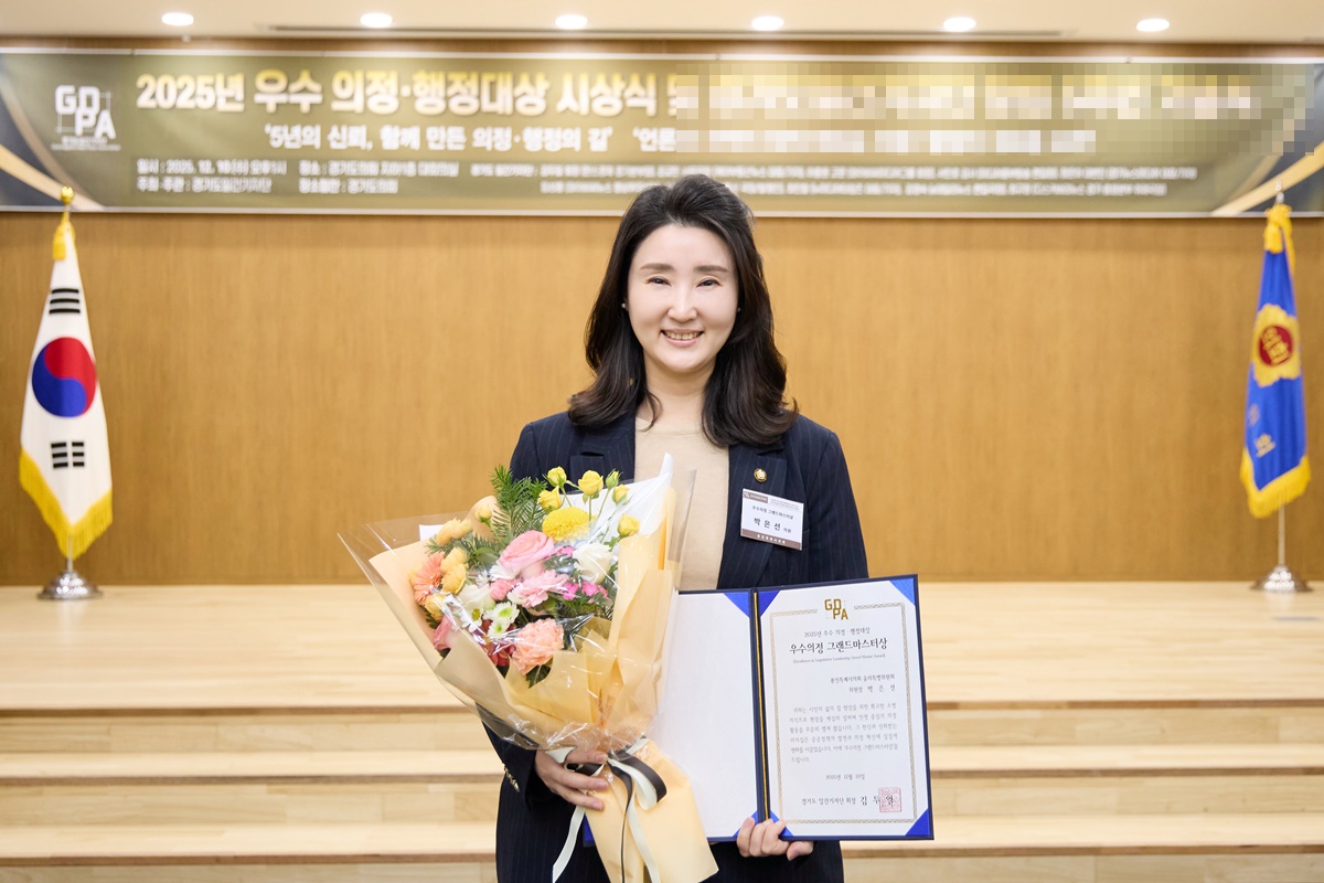 용인특례시의회 박은선 의원(국민의힘, 보정·죽전1·죽전3·상현2, 윤리특별위원장)은 12월 10일 경기도의회 대회의실에서 열린, 경기도 일간기자단 주관 ‘2025년 우수 의정·행정대상’ 시상식에서 우수의정부문 ‘그랜드마스터상’을 수상했다.