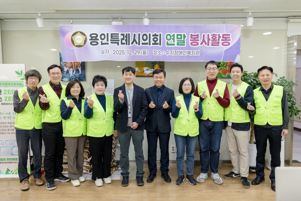 용인특례시의회(의장 유진선)는 29일 연말을 맞아, 처인‧기흥‧수지구 장애인복지관을 찾아 봉사활동을 했다.