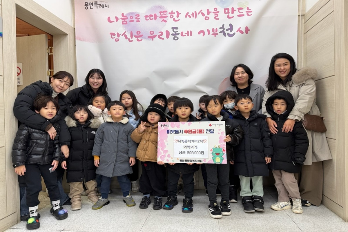 시립동천자이2차 어린이집(원장 박정훈)은 지난 6일 어려운 이웃을 위해 써달라며 동천동에 성금 50만 9000원을 기부했다.