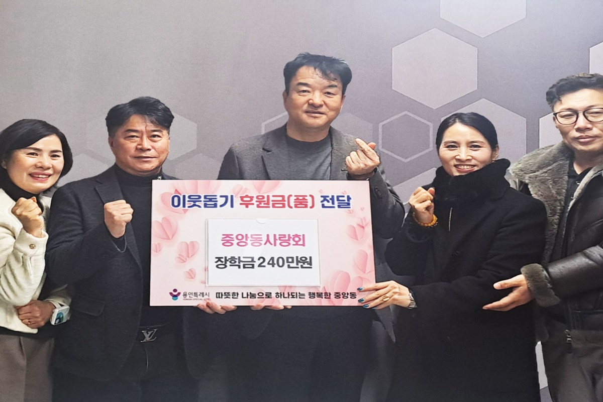 중앙동 사랑회는 지난 5일 지역 취약계층 아동의 학습을 지원하고자 장학금 240만 원을 후원했다.