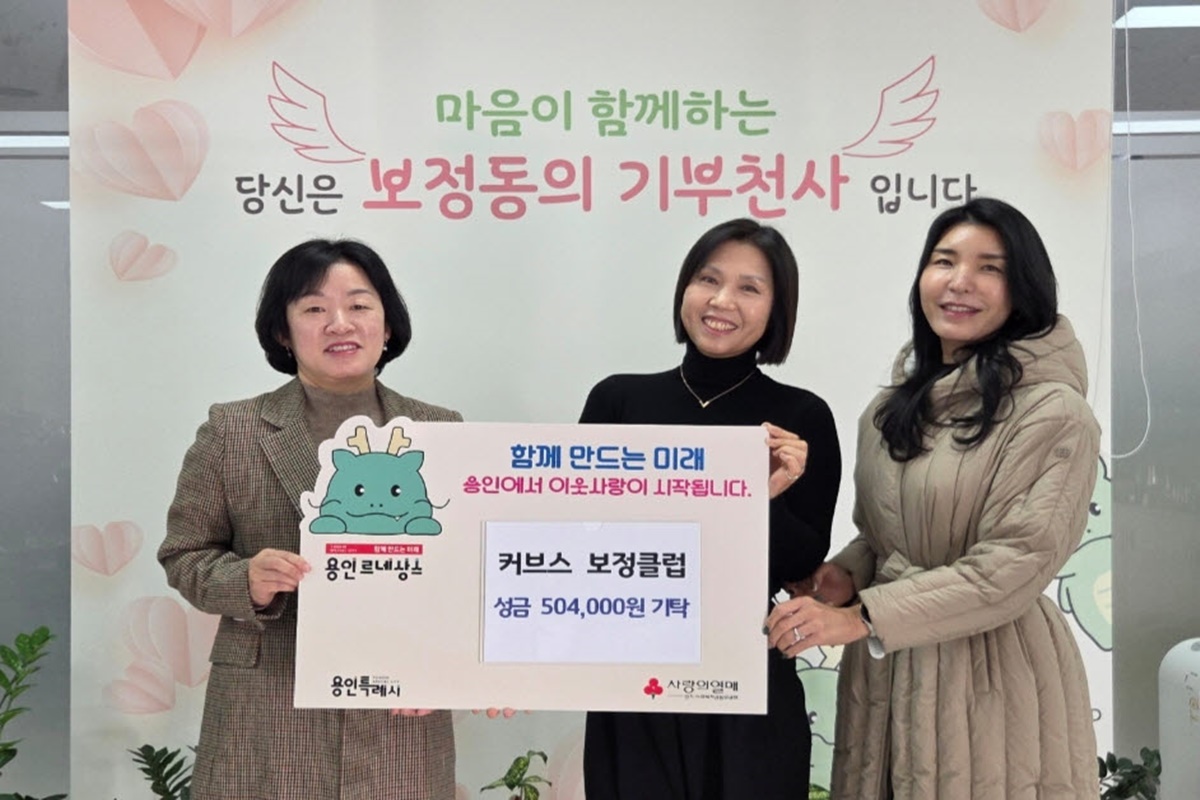 커브스 보정클럽(대표 박은경)은 지난 6일 보정동에 성금 50만 원을 전달했다. 커브스 보정클럽은 매년 ‘사랑의 열매’를 통해 나눔을 실천해 왔다. 커브스 보정클럽 관계자는 “회원들과 함께 나눔의 가치를 실천할 수 있어 뜻깊게 생각한다”며 “앞으로도 일회성에 그치지 않고 지역사회를 위한 기부와 나눔 활동을 꾸준히 이어가고 싶다”고 했다.