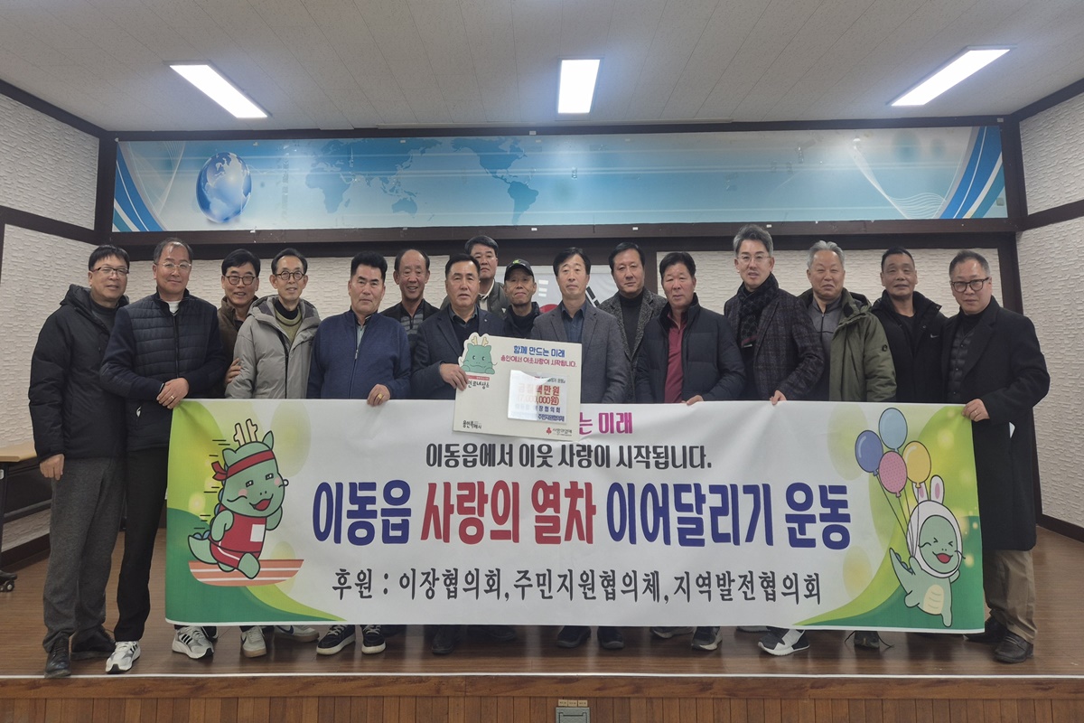 이동읍 이장협의회·주민지원협의체·지역발전협의회는 지난 6일 700만 원을 기탁하며 사랑의 열차 이어달리기 운동에 동참했다.