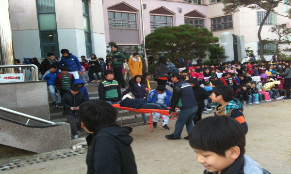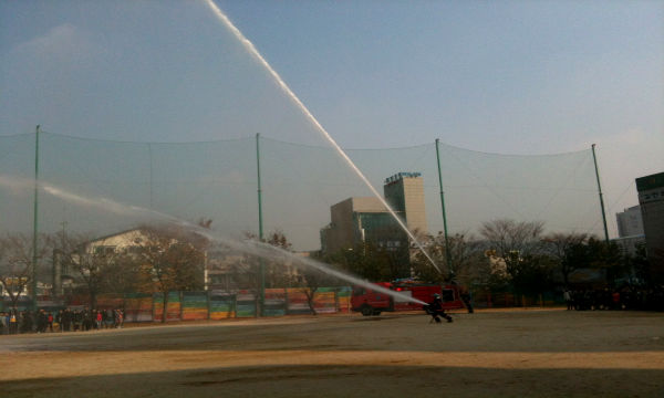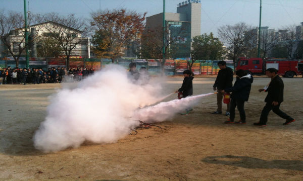 대피훈련은 실제 화재상황을 가정, 경보사이렌 작동과 동시에 전교생이 각 학년과 반별로 지정된 안전한 대피지역으로 이동했으며, 소화기 사용방법 교육의 경우 학생과 교사가 직접 참여해 사용해보는 시간으로 진행했다.