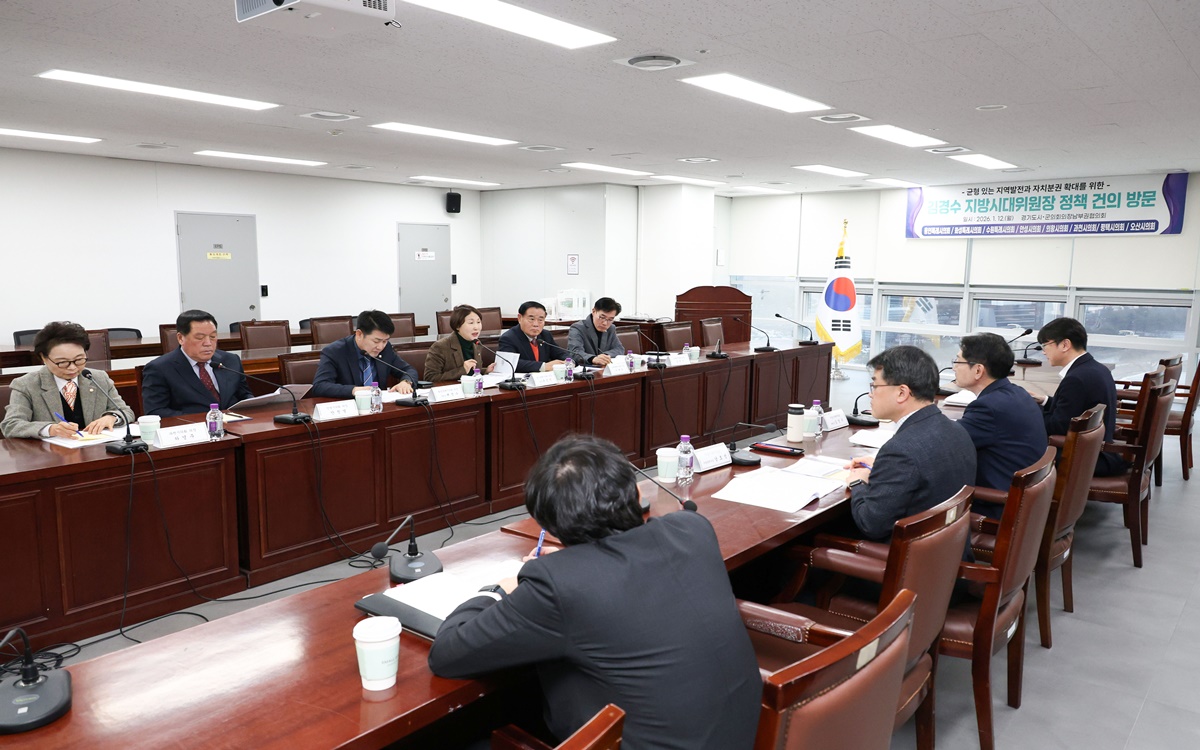 경기도시·군의회의장남부권협의회(회장 유진선 용인특례시의회 의장)는 12일 세종특별자치시 지방시대위원회 대회의실에서, 김경수 지방시대위원회 위원장과 면담을 갖고, 지방의회 인사권 독립 이후에도 조직‧예산 편성권과 자체 조사‧감사 권한이 여전히 집행부에 구조적으로 종속돼 있는 현실을 공유하며, 이러한 제도적 한계에 따른 입법 미비를 보완하기 위한 정책 개선 방안을 공식 건의했다.