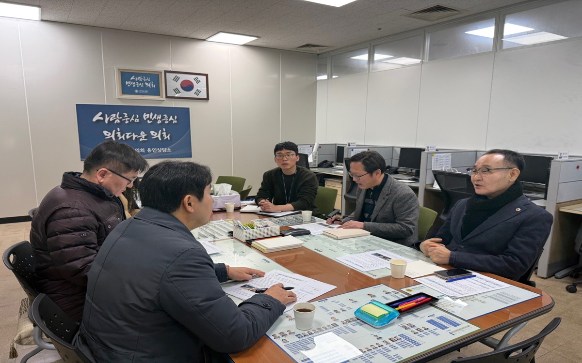 김영민 의원은 27일 경기도의회 용인상담소에서 경기도 유충호 버스관리과장, 유관희 버스서비스팀장, 용인시 조동우 버스정책팀장과 정담회를 열고, 버스정류소 시설 개선 현황과 향후 계획을 집중 점검했다.