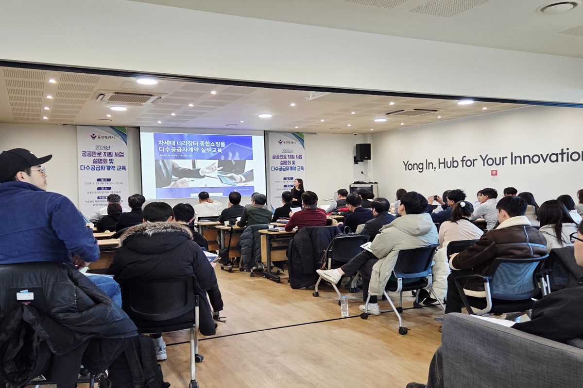 용인시산업진흥원(이사장 이상일)은 지난 29일 ‘소공인‧스타트업 허브’ 라운지에서 용인 소재 중소기업 관계자 총 52명이 참석한 가운데, ‘2026년 공공판로 지원사업 설명회 및 교육’을 개최했다고 밝혔다.