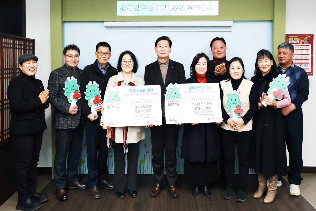 용인특례시(시장 이상일)는 2일 농촌지도자용인시연합회(회장 김성겸)와 생활개선용인시연합회(회장 박찬선)가 ‘사랑의 열차 이어달리기’에 성금 300만 원을 기탁했다고 밝혔다.