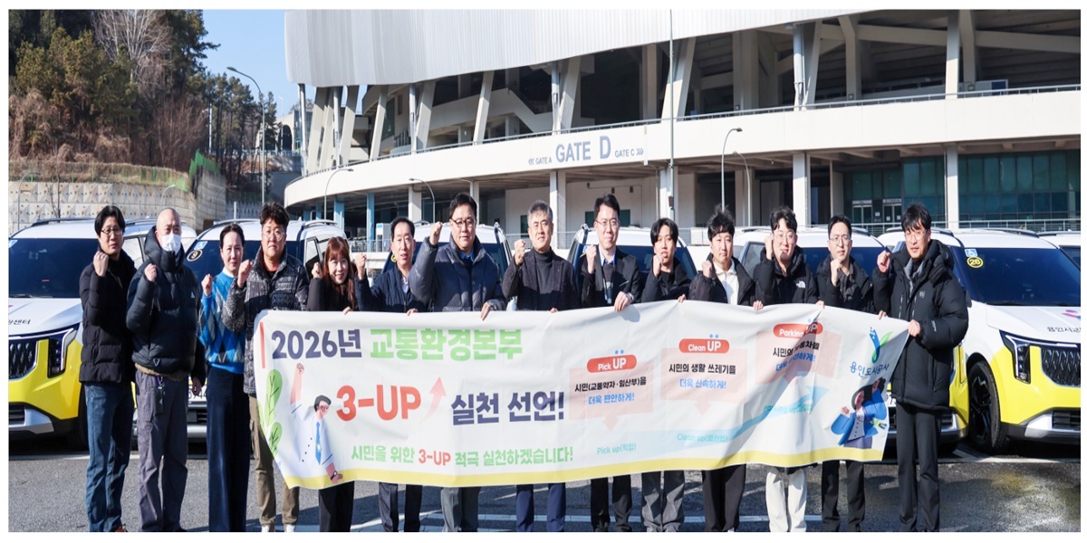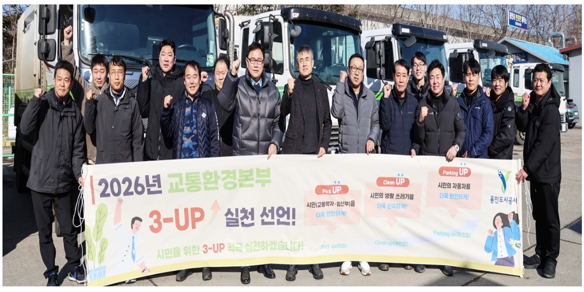 용인도시공사(사장 신경철) 교통환경본부는 2026년 시민에게 더 나은 서비스를 제공하기 위해 지난 3일‘3-UP(쓰리업) 실천 선언식’을 개최하고, 교통·환경·주차 분야 전반에서 시민이 체감할 수 있는 서비스 수준을 한 단계 끌어올리겠다고 밝혔다.