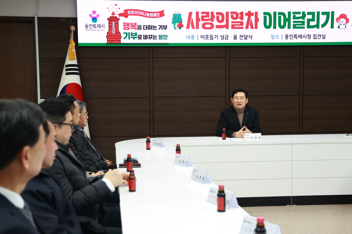 이상일 시장은 12일 시청 접견실에서 ‘사랑의열차 이어달리기’ 성금·품 전달식을 열고, 지역 내 기업·기관·단체 관계자들과 나눔의 시간을 가졌다.