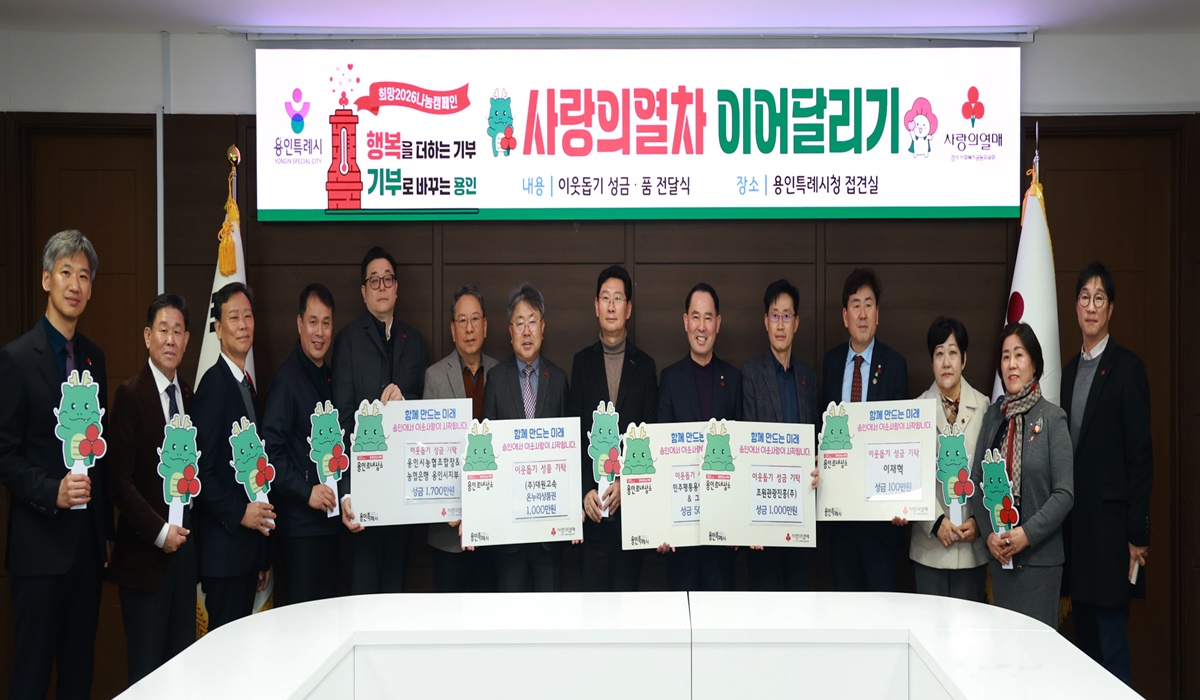 용인특례시(시장 이상일)는 연말연시 기부 릴레이 ‘사랑의열차 이어달리기’가 목표액을 초과 달성한 가운데, 나눔에 참여한 기관들의 성금·성품 전달이 계속 이어지고 있다고 12일 밝혔다.