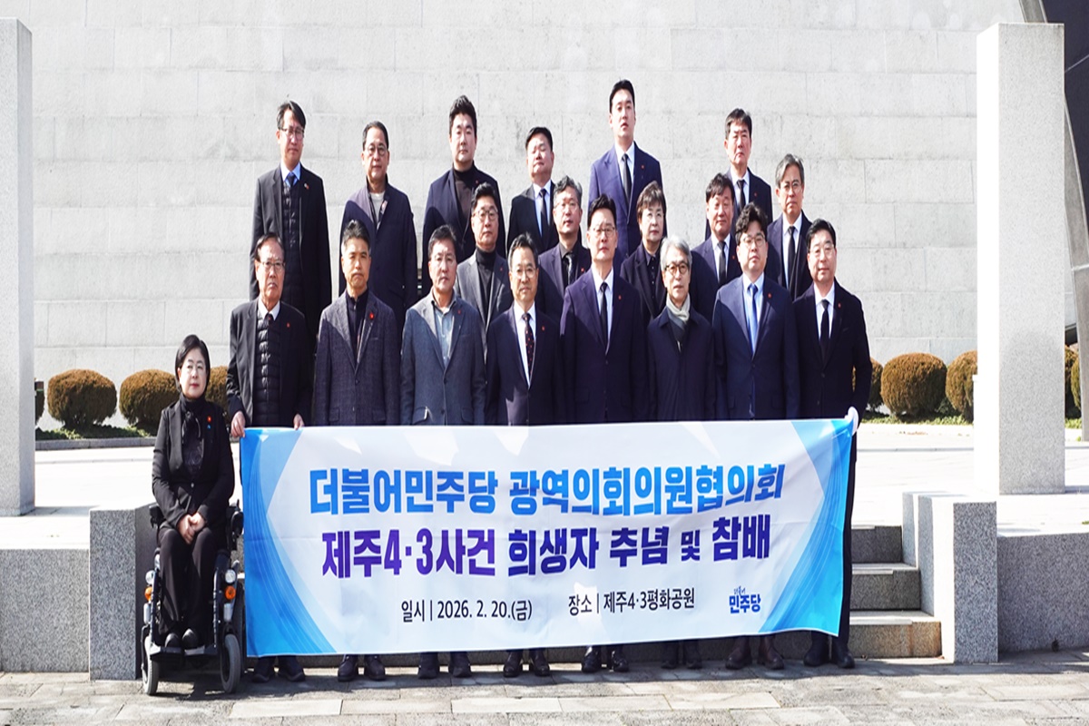 더불어민주당 전국광역의회의원협의회(대표 최종현, 경기도의회) 소속 의원들이 20일(금) 제주평화공원을 방문해, 4·3 희생자에 대한 참배와 함께 제주4·3 왜곡 방지와 명예회복를 위한 「제주4·3특별법」 개정을 촉구했다.