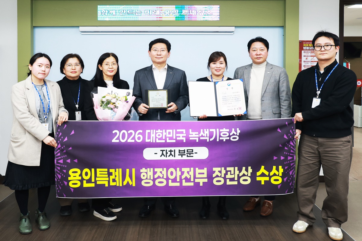 용인특례시(시장 이상일)는 25일 국회기후변화포럼이 주최하는 ‘2026 대한민국 녹색기후상 자치 부문’에서 행정안전부장관상을 수상했다고 26일 밝혔다.