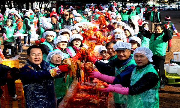 20일 용인시 처인구 마평동 용인실내체육관 앞 광장에서 어려운 이웃들의 겨울나기를 돕기 위한 ‘사랑의 김장 담그기’ 행사가 열렸다.