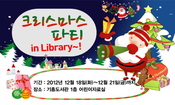 ‘산타할머니가 들려주는 크리스마스 이야기’를 시작으로 크리스마스 케이크를 직접 만들어보는 ‘크리스마스 어린이 요리 뷔슈드노엘’과‘클레이눈사람 만들기’,‘트리장식품 만들기’등 다채로운 행사들이 진행될 예정이다. 또한 1층 어린이자료실 로비에서는 크리스마스 트리에 소원을 적어 기원하는 ‘소원트리만들기(부제 : 소원을 말해봐) 행사가 선보인다.