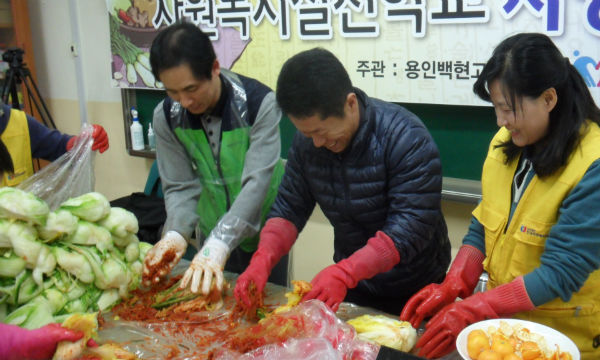 지난 11월 중순,‘동백 사랑의 교회’는 교인들이 십시일반 모은 이불 및 세제 등 생필품 10box를 어려운 이웃들에게 전해달라고 동백동주민센터에 기탁했다. 백현고 학생들과 학부모위원회는 지난 11월 말에 김치 46 상자(10kg/상자)를 직접 담가 지역의 장애인과 독거노인 대상으로 전했다.