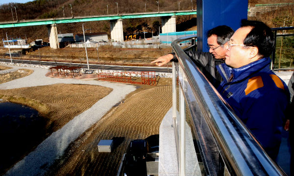 이번 현장 방문지인 처인구 마평동∼삼계리 일원에서 추진 중인 경안천 자연형 하천정화사업은 지난 2007년 12월부터 총 635억 원의 사업비로 저수호안(8.9km), 재이용수 관로(21.1km), 펌프장(3동), 인공습지(2개소) 등을 조성하는 것으로 현재 공정률은 97%이며 2013년 4월 준공을 목표로 하고 있다.