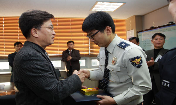 이날 표창을 받은 보정지구대 김선걸 순경 등은 12월 3일 새벽 4시 30분경 보정동 소재 찜질방에서 “잠을 자고 있는데 강제추행을 당했다!”는 신고를 접하고 긴급히 현장으로 출동, 도주로 차단 및 지하 주차장 및 상가 등을 신속‧정확하게 수색하여 발생 2시간 만에 화장실 좌변기에 숨어있는 성 추행범을 검거한 유공이다.