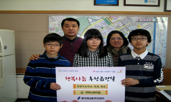 풍덕천2동 두은석 동장은 “주변의 어려운 이웃을 생각하고 작은 도움이라도 힘이 되고자 노력하는 학생들은 분명히 훌륭한 어른으로 성장할 것”이라고 격려했다.