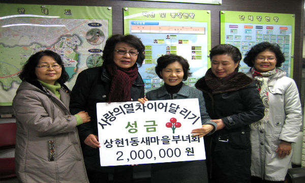 한편 상현1동에서는 독지가의 성품(344만원 상당) 외에 기관단체 및 주민들이 십시일반 5백여만원의 성금을 모아 ‘사랑의 열차 이어달리기’에 동참하며 온정의 손길을 이어가고 있다.