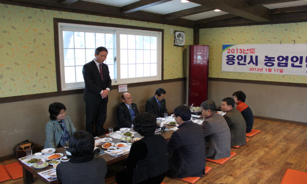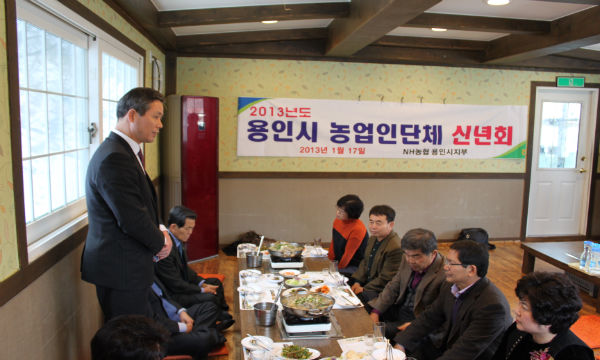 NH농협 용인시지부(지부장:서은호)는 1월17일 계사년 새해를 맞이하여, 용인시새농민회 이상엽 회장 등 용인관내 8개 농업관련 단체장과 용인시청 및 용인시농업기술센터 농업관련 부서장을 초청하여, 새해 농업설계와 정보를 교환하는 자리를 마련하였다.