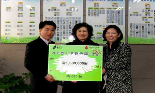 이번 성금은 지난 6일 관내 주민들에게 우리 쌀로 만든 떡국 떡과 고구마, 참기름 등을 판매하고 남은 수익금 100만원과 지난 해 11월 김장철을 맞아 절임배추를 판매한 수익금 50만원을 모은 것이다.