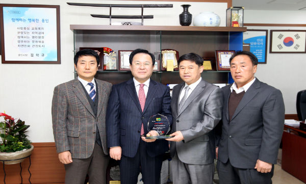 김학규 용인시장은 13일 시장실에서 2012용인시장배 전국동호인 테니스대회를 주최.주관한 용인시테니스연합회 임원들을 접견하고, 그 공로를 치하했다.
