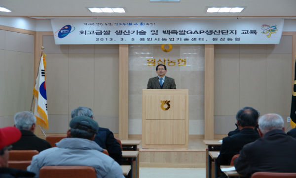 이번 교육은 프리미엄급 ‘용인백옥 쌀’ 생산을 위한 최고급쌀 실천매뉴얼 강좌로, 종자소독·육묘관리, 병해충 방제를 비롯해 질소비료 시비량을 일정 수준 이하로 줄여 단백질 함량을 6.3% 이하로 낮춰 밥맛을 좋게 하고 완전미율 96% 이상으로 높이는 방법 등 재배관리와 농산물이력추적관리·GAP(농산물우수관리)인증, 농약안전사용관리 등 다양한 교육을 중점적으로 펼친다.