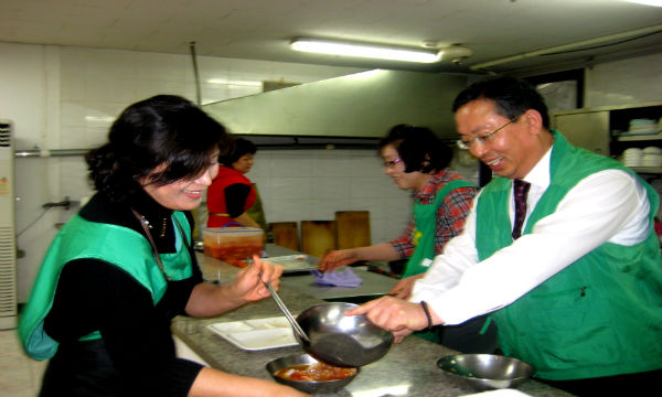 성복동장을 비롯한 공무원들과 성복동 새마을부녀회(회장 이명희) 회원 10여명은, 이날 오전부터 처인구 마평동에 위치한 용인시새마을회관 지하 무료급식소를 찾아 재료 다듬기, 반찬 만들기, 식탁 세팅 등 식사 준비를 마치고 홀로어르신, 노숙자 등 급식소를 찾아온 어려운 이웃들을 맞아 정성껏 식사를 제공했다.