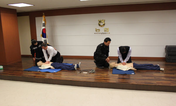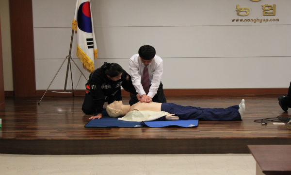 농협 용인시지부(지부장 서은호)는 14일 자체 회의실에서 시지부 전 직원과 출장소(시청, 처인), 지점(용인동백역) 직원이 참석한 가운데 용인소방서 역북119안전센터 구급대원을 초빙해 심폐소생술 및 기도 폐쇄시 응급조치방법 등 「고객행복 생명지킴이」 안전교육을 실시했다.