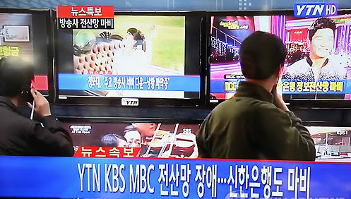 KBS와 MBC, YTN 등 주요 방송사와 신한은행과 농협 등 일부 금융사들의 전산망이 20일 오후 2시께부터 일제히 마비됐다.