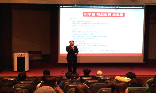 이 의원은 인생사의 굴곡을 겪으며 힘들게 살아온 지난날의 진솔한 경험을 소개하면서 이 같이 말했다. 이어 학생들에게 “분명한 삶의 목표를 세우고, 대학 생활을 해야 한다”고 당부했다.