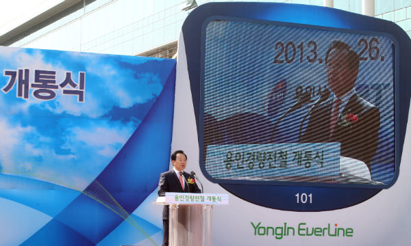 용인시(시장 김학규)는 26일 용인시청광장 특설무대에서, 김학규 용인시장을 비롯, 김문수 경기도지사와 주요 내빈, 유관기관, 시민 등 1,000여명이 참석한 가운데 ‘용인경전철 개통식’을 열었다.