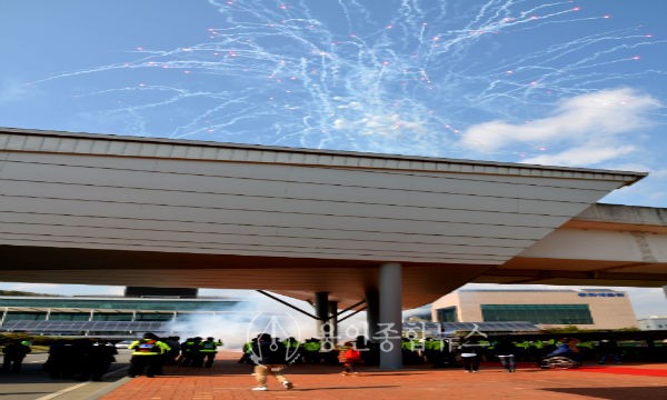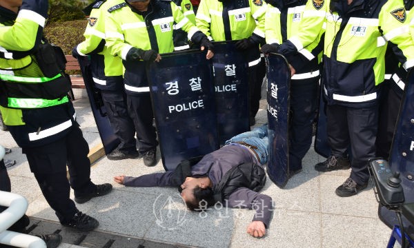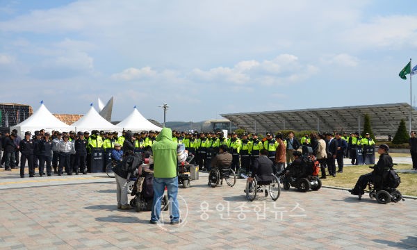 한편 용인동부경찰서에서는 수십명의 경찰을 행사장 주변에 배치,행사는 축하 분위기가 아니라 어쩌면 난장판 행사가 되어 버렸고 테이프 커팅식장과 시승식 역사인 용인시청역사 앞에서는 시위를 하는 신체 장애인들과 경찰들이 첨예하게 대치하고 있어, 테이프 커팅식이 이루어지지 않았다.