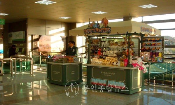 용인경전철 전대-애버랜드 역사 내에 에버랜드에서 운영하는 선물 부스가 설치되어 시민들에게 판매를 하고 있다.