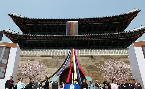 문화재청은 4일 오후 2시 숭례문 현장에서 박근혜 대통령과 복구사업 참여 장인, 그리고 일반 시민 등이 참석한 가운데 지난 2008년 2월10일 화재 이래 진행한 복구사업이 공식 완료됐음을 선언하는 완공식을 개최했다.