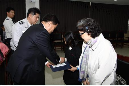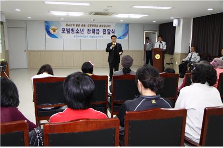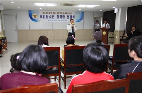 용인서부경찰서(서장 이한일)는 지난 5월 3일 서부경찰서 3층회의실에서, 경찰발전위원회 위원들과 함께 모범 청소년에 대한 장학금 전달식을 개최했다.