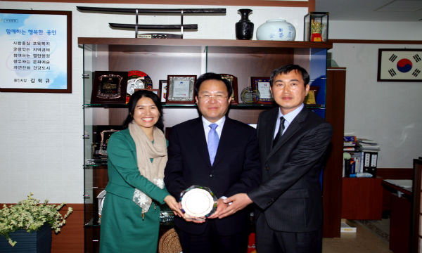 광교마을 이던하우스 김상식 회장 등은 지난 7일 오후 4시, 시장실을 방문하여 김학규 시장에게 감사패를 전하며, “용인시가 광교지구 광교마을 아파트 입주민들의 주요 민원에 대해,신속하고 적극적인 행정 처리로 대응해 준 것에 감동받은 주민들의 뜻을 담았다”고 밝혔다.