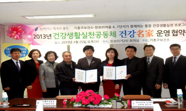 김현숙 기흥구보건소 보건행정과장은“이번 협약체결을 계기로 공동주택 내 가족과 이웃이 함께하는 건강증진프로그램에 참여함으로써 개인이 아닌 ‘함께하는 건강한 삶’의 의미를 실천 할 수 있는 계기가 되기를 바란다.”라고 말했다.