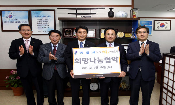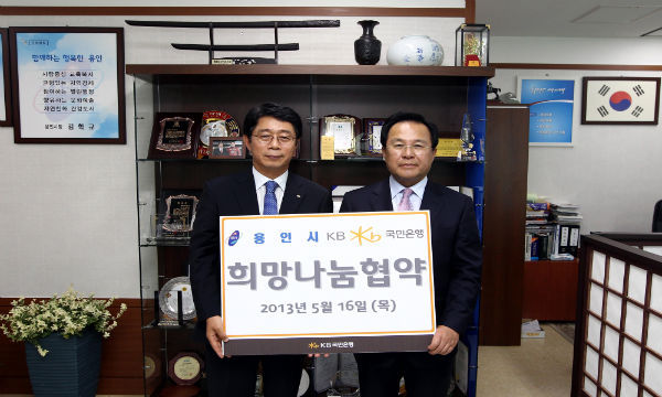 김학규 용인시장과 홍석철 KB국민은행 경기남지역본부장 등 관계자들은 이날 오후 2시 용인시청 시장실에서 협약식을 갖고 나눔 문화 확산에 함께 협력하기로 했다.