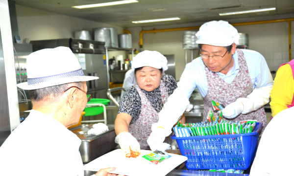 ▲ 조규원 조합장용인농협(조합장 조규원)양지면 농촌사랑봉사단에서는 24일, 14명이 한조가 되어 용인시노인복지관 배식 봉사 활동을 실시했다.