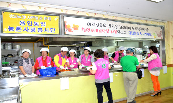 양지 농촌사랑 봉사단이날 배식봉사활동은 조규원 조합장과 고환주 경제상무, 오세인 차장, 소진만 용인농협 주부대학 회장과, 용인농협 양지농촌사랑봉사단 회원들이 참여해 구슬땀을 흘리며 어르신들에게 배식 봉사활동을 하였다.