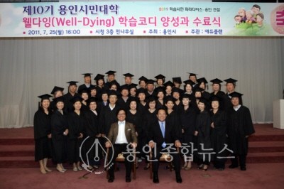 용인시(시장 김학규)는 25일 시청 전나무실에서 고령화 시대를 맞아 전문화된 웰다잉(Well-Dying) 학습코디 양성과정을 마친 교육생 40명을 대상으로 ‘제10기 용인시민대학’ 수료식을 가졌다.
