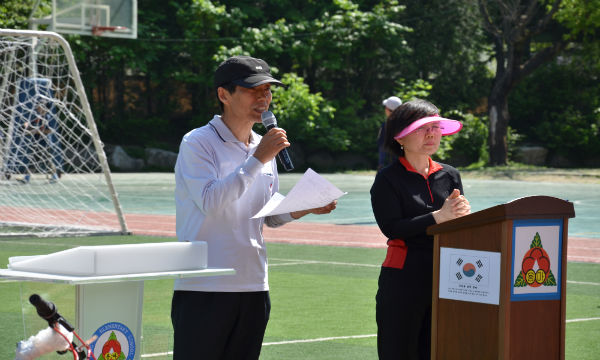 한편 이정선 운영위원장은 인사말에서“오늘 날씨가 우리를 반겨주는 듯 활기차고, 높은 하늘이 더욱 아름다운 날씨입니다. 어제 우기로 인해, 오늘로 행사를 연기해서 많은 걱정을 했는데, 정말 많은 학부모님들이 체육대회에 참여하여 함께 즐기게 되어 진심으로 감사의 마음 전하며, 또한 이런 한마음 체육대회를 할 수 있도록 배려해주신 교장선생님과 관계자 여러분들에게 학부모님들을 대신해서 감사의 말씀 전합니다. 오늘 하루 즐거운 마음으로 체육대회를 즐기셨으면 감사하겠습니다.”라며 인사말을 하였다.