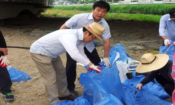 매년 장마철이 되면 다량의 오염물질이 호수에 유입되어, 호수오염을 가중 화 시키는 현실에서, 장마 전에 상류의 오염된 쓰러기 수거를 위해 공동사업으로 힘을 모은 것이다.