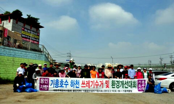용인 기흥호수 상류 오산천 상갈 교 인근과, 백남준 센터입구의 주차장과 하천변에 대한주택 관리사협회 용인시지부(지부장 이선미)회원과, 기흥호수 살리기(위원장 김진태) 위원 60여명이 환경정화 청소를 하였다.