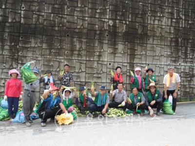 양지면 새마을지도자회(회장 이윤기)와 새마을부녀회(회장 이귀영) 주관으로 회원 30여명이 참여해 삼성전원마을 옆 3,000㎡ 규모의 밭에서 3,000자루 (3,000개) 분량의 옥수수를 수확했다.