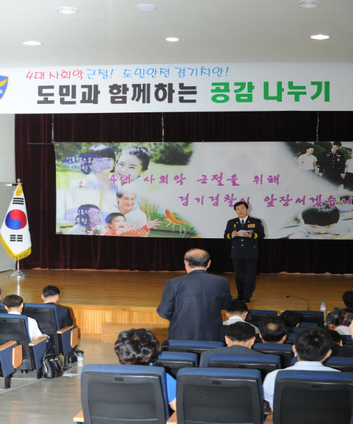 이날 간담회는, 경기경찰의 주요 업무에 대한 설명과 함께 성폭력 등‘4대 사회악 범죄’근절 추진사항과, 도민들의 경찰에 대한 건의사항 등을 듣고, 해결방안에 대해 논의하는 방식으로 진행됐다.