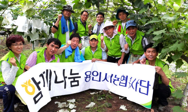 『함께 나눔 용인시농협봉사단』은 지난주에 이어 막바지 포도 봉지 씌우기 작업을 실시했으며, 용인시 관내 농업인과 소외계층에 대한 봉사활동을 꾸준히 실천해오고 있다.