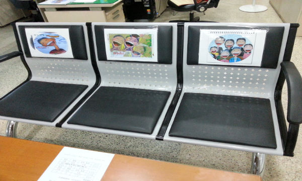 또한 민원인 응접세트 소파에도 ‘웃어요 이미지’를 부착, 면사무소를 찾는 민원인들에게 다양한 통로로, 웃음 서비스를 제공받을 수 있게 하고 있다.