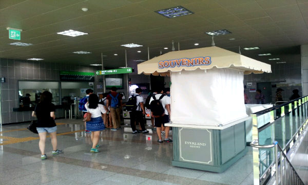 전대 역사 내에 설치되어 있는 부스는, 에버랜드 30%할인권을 무료로 배포하는 목적으로 설치되었을 뿐, 에버랜드 홍보용 상품을 판매하는 것은 불법인 것이다.